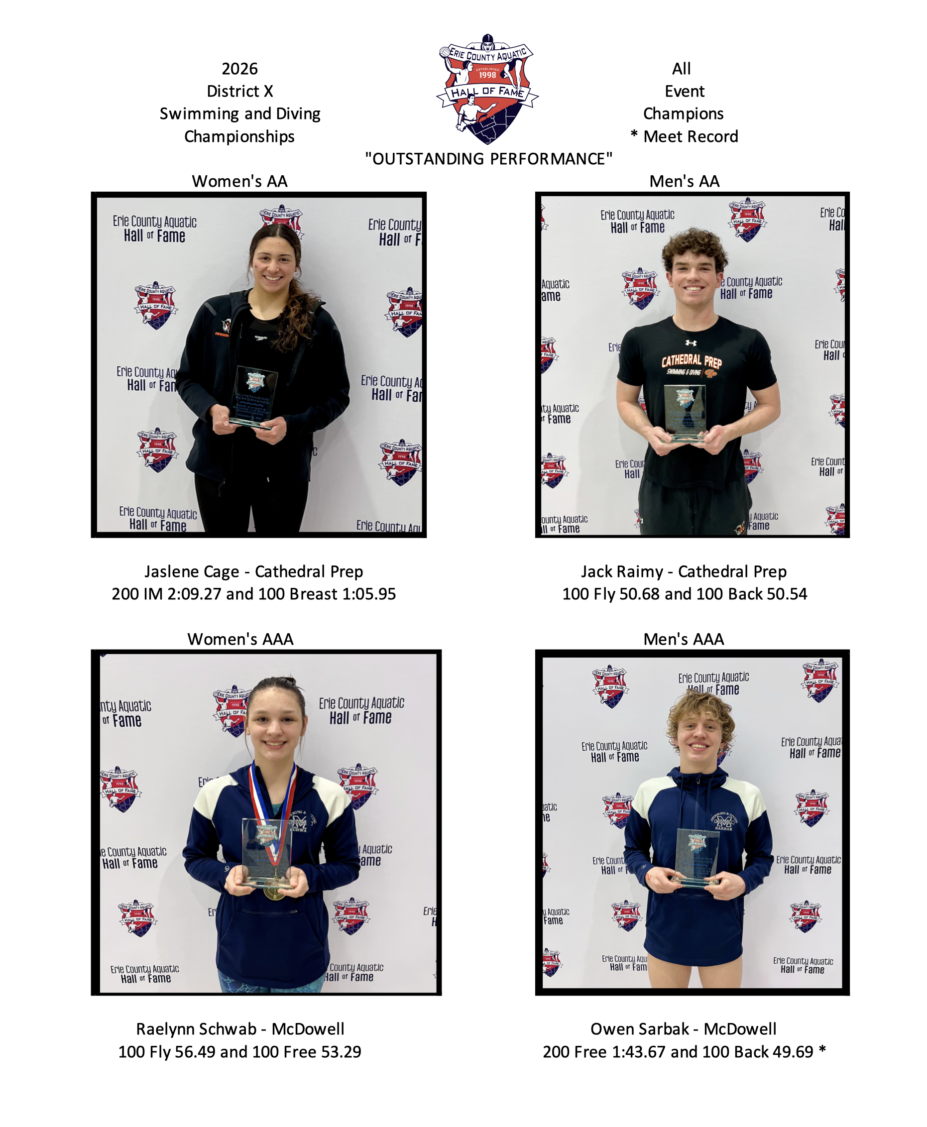 The ECAHF is proud to recognize these athletes for their “Outstanding Performance” at the